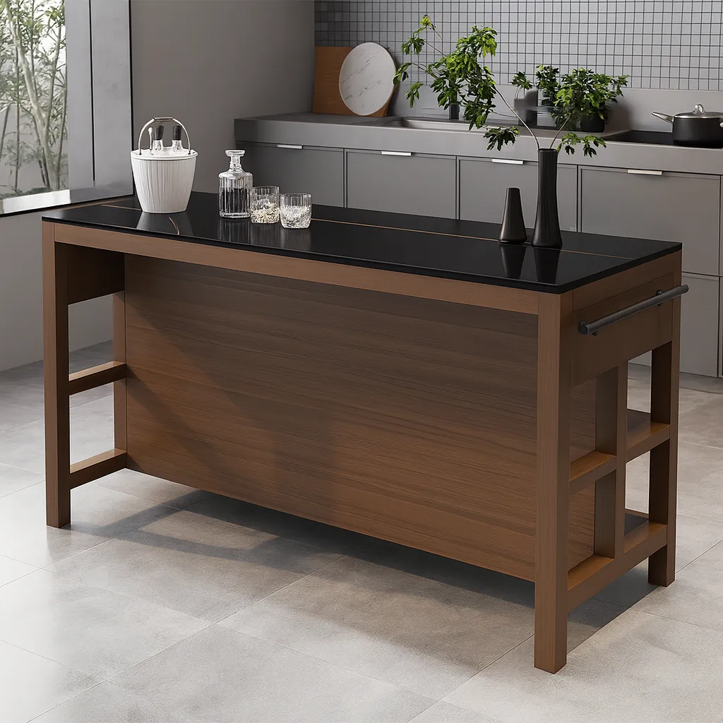 Modern Wooden Kitchen Island With Storage Shelves And Drawers