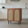 This art deco sideboard features rattan-weaved doors, a wooden structure, and spacious storage, combining style with everyday functionality.
