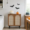Crafted with an art deco influence, this wooden sideboard blends decorative charm with practical storage. The design features arched rattan weaved doors that bring texture and visual interest to the piece. The sideboard offers a sturdy wooden structure with an ample countertop, making it suitable for displaying décor, storing tableware, or organizing household items. Its raised legs provide stability while keeping the design light and balanced.
