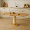 Designed with a modern approach, this wooden dining table offers a clean and balanced look for your home. The soft rectangular shape and smooth finish create an inviting space for meals and gatherings. The tabletop is crafted from wood with natural grain patterns, supported by a stable pedestal base for reliable use. Its fixed structure ensures lasting stability, while the rounded edges add to its contemporary design.