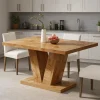 Designed with a Minimalist aesthetic, this solid oak wood dining table brings both function and style to your kitchen or dining area. Its clean rectangular top and sculptural V-shaped base provide a striking balance between simplicity and contemporary design. Crafted from solid oak wood, the table offers a sturdy surface for dining, working, or entertaining. The wide top comfortably accommodates tableware and decor, while the solid base ensures stability.